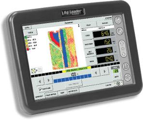 Yield Recording: The yield monitor is a tool to measure crop yield as the crop is harvested. The yield value, crop moisture and elevation are recorded on a storage card every 2 seconds and associated to a location value by latitude and longitude provided by the GPS (Global Positioning System). That value can be viewed in the cab. The yield is usually proportional to the amount of matter entering the machine but at times can be totally unrelated. The storage card is taken later on to a desktop computer and downloaded to produced geo-referenced maps. |