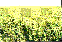 This is a blooming field of peas. The plant grows like a vine. At harvest time the crop is very low to the ground. |