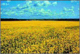 Canola is an oil seed descending from the rape seed. It is famous for the golden color of the fields during flowering. The seeds are found in pods and can compared to the size of beebees. These seeds are pressed to produce vegetal oil for cooking purposes. The by-product is often used for animal feed. |